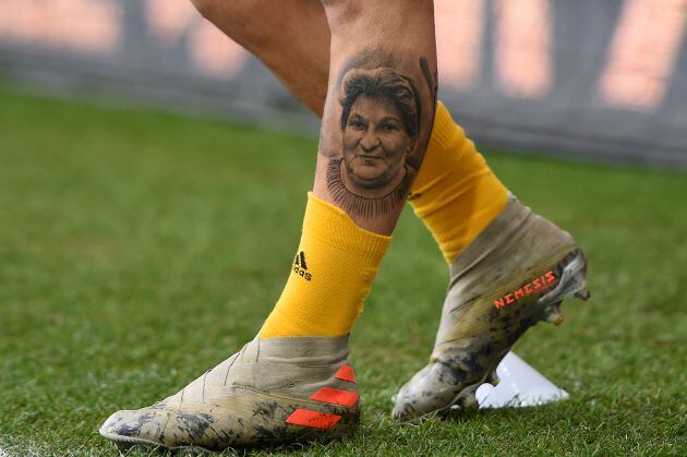 Tatuaje de Lucas Torreira con el rostro de su madre / Harriet Lander/Copa/Getty Images