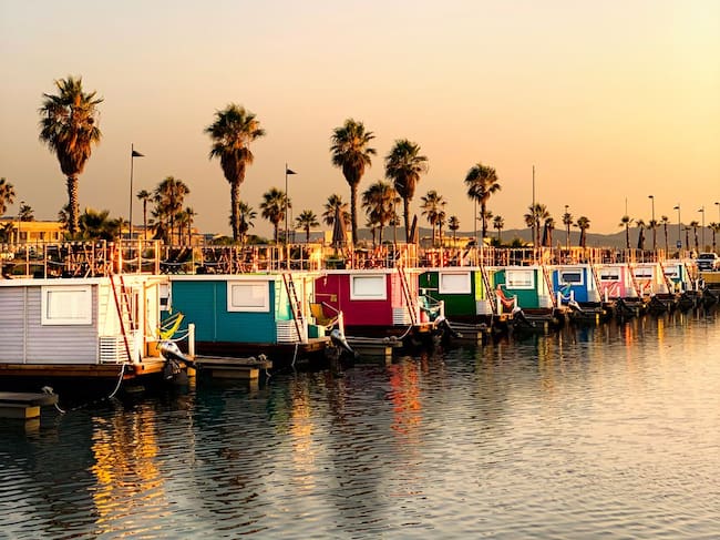 A diferencia de lo que ocurre con las casas en el árbol, en España no hay tanta oferta para vivir la experiencia de alojarse en una casa flotante. Porque no es lo mismo una casa flotante que un barco, que puede moverse o no. Este tipo de residencias están fijas en un punto a pesar de estar sobre el agua y no hay opción a marearse. Justo antes de la pandemia, en 2019, una familia de argentinos, nietos de europeos crearon Boat Haus, un proyecto que aúna varias casas flotantes en La Línea de la Concepcion (Cádiz), frente al Peñon de Gibraltar. Las casas tienen wifi, cocina equipada, baño privado y hasta terraza propia con hamacas. Además, hay bicicletas y parking privado y admiten mascotas.