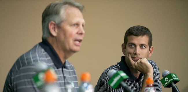 Brad Stevens y Danny Ainge, durante una rueda de prensa / Getty Images