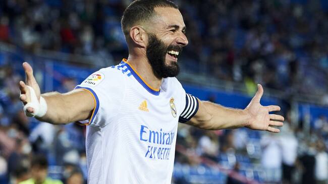Benzema celebra uno de sus goles contra el Alavés, el pasado sábado / Juan Manuel Serrano Arce/Getty Images