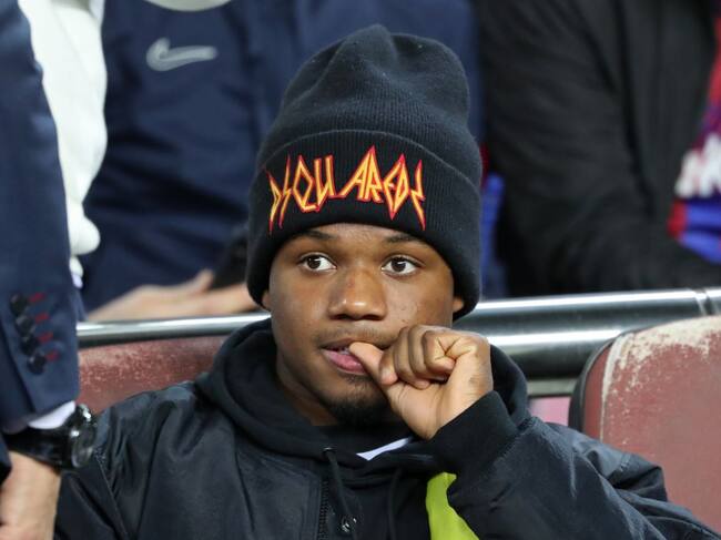 Ansu Fati, desde la grada del Camp Nou, durante el partido del Barça contra el Espanyol / Getty Images