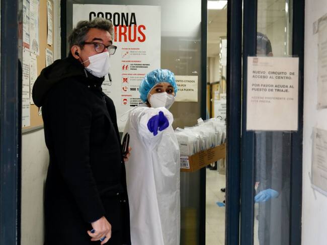 Una sanitaria en la puerta del Centro de Salud Universidad, este martes. / Cézaro De Luca (EUROPA PRESS)