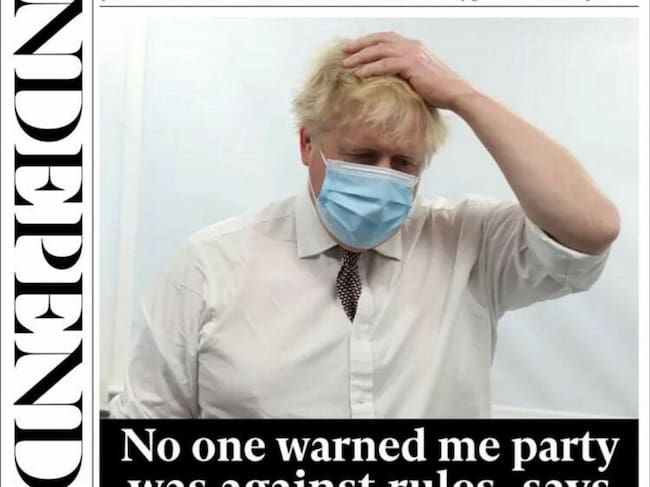 Los periódicos del Reino Unido se están dando un festín con las fiestas de Boris Johnson y con sus excusas. El primer ministro está a un paso del abismo tras conocerse que las fiestas y reuniones sociales, siempre regadas con alcohol, no pararon en Downing Street ni siquiera en los momentos más lúgubres de la COVID-19. Hace unos días, un diario ocupó toda su portada con una foto del primer ministro y la palabra "mentiroso". Este miércoles, The Independent pone también una foto del primer ministro y construye este titular demoledor: "Nadie me advirtió de que la fiesta iba contra las normas, dice el hombre que hizo las normas".
