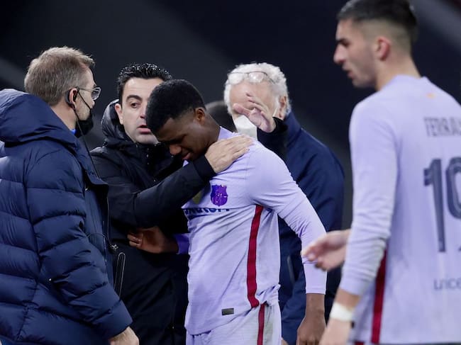 Ansu Fati se marcha entre lágrimas tras sufrir la lesión / Getty Images