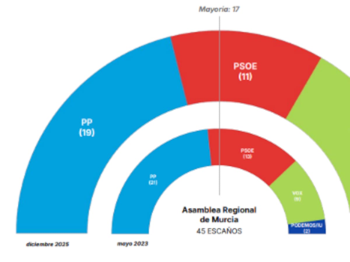El PP tendría 19 escaños; Vox 13 y el PSOE 11 diputados