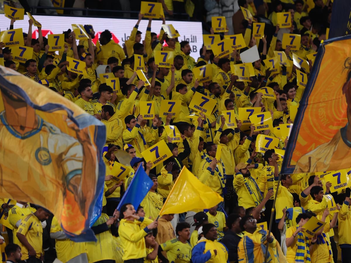 La grada del Al-Nassr no olvidó a su estrella que, pese a no jugar, fue aclamado por todo el AL-AWWAL PARK Stadium
