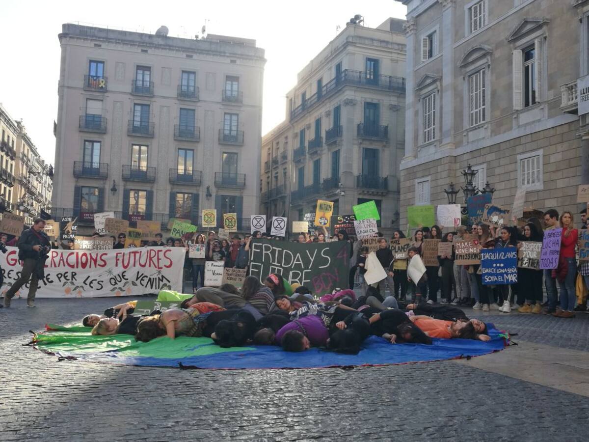 La performance ha empezado con un sonido de ambulancia y varios activistas, colocados en diferentes extremos de la plaza han salido al centro y se han tirado al suelo simulando su muerte