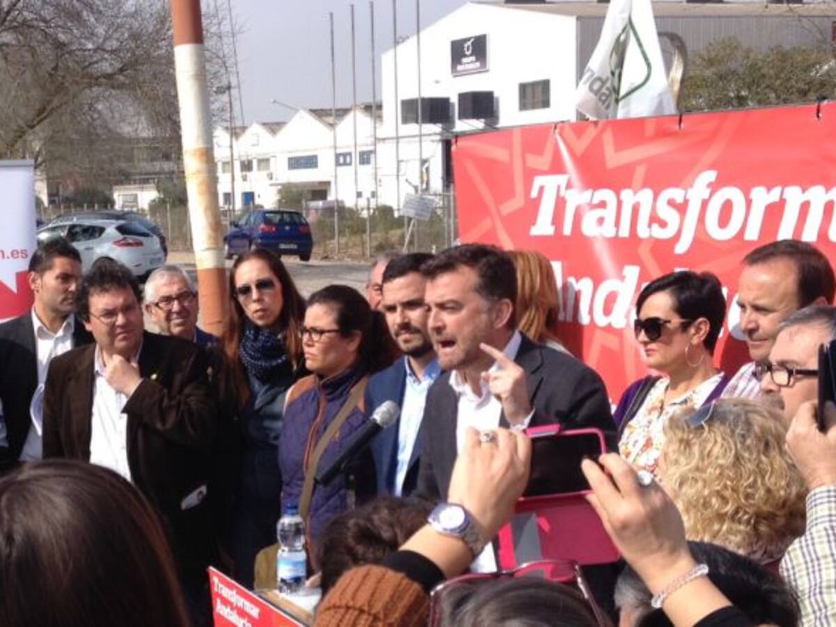 El candidato de IU, Antonio Maíllo, se ha ido a las puertas de Santana Motor en Linares para reclamar la reindustrialización de Andaucía. Y el programa de IU propone elevar, desde ahora hasta 2020, el PIB de este sector económico del 9-11% actual al 20%