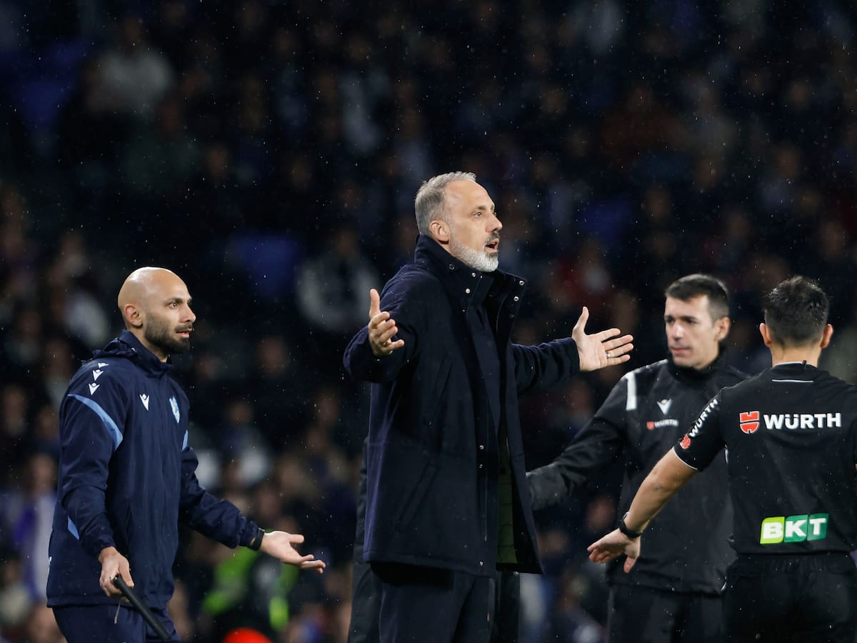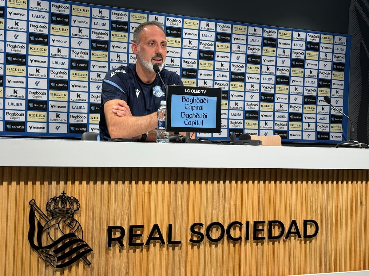 Pelegrino Matarazzo a la altura de Imanol Alguacil, Roberto Olabe y Rynald Denoueix