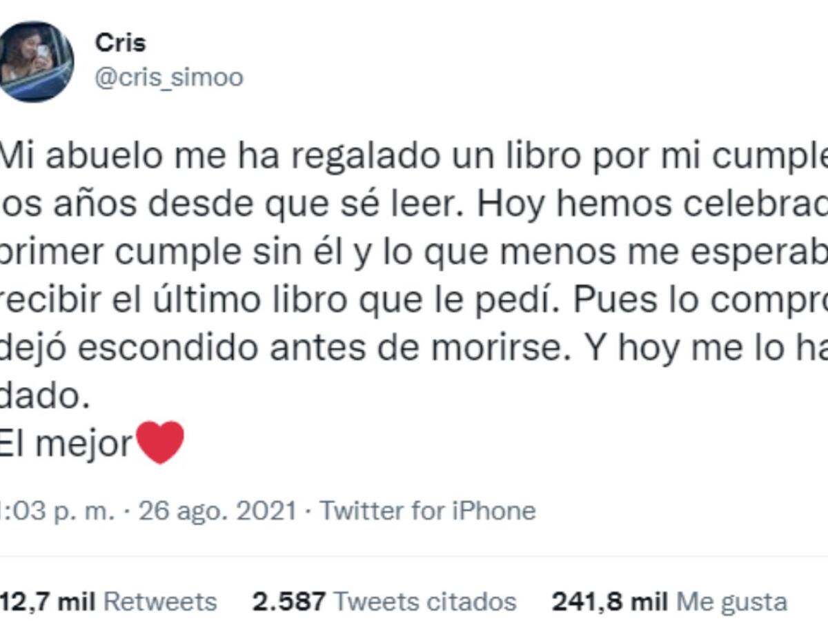 Miles de usuarios han interactuado con el 'tweet' (y posterior hilo) que ha publicado una joven sobre la tradición entre su abuelo y ella en torno a la lectura, que ha proseguido después de la muerte de él