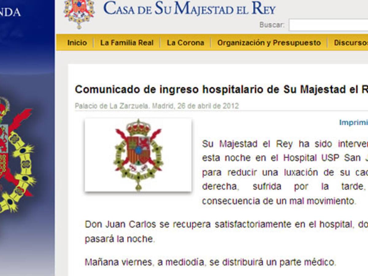 El rey, operado de nuevo por una luxación en la cadera a consecuencia de un "mal movimiento"
