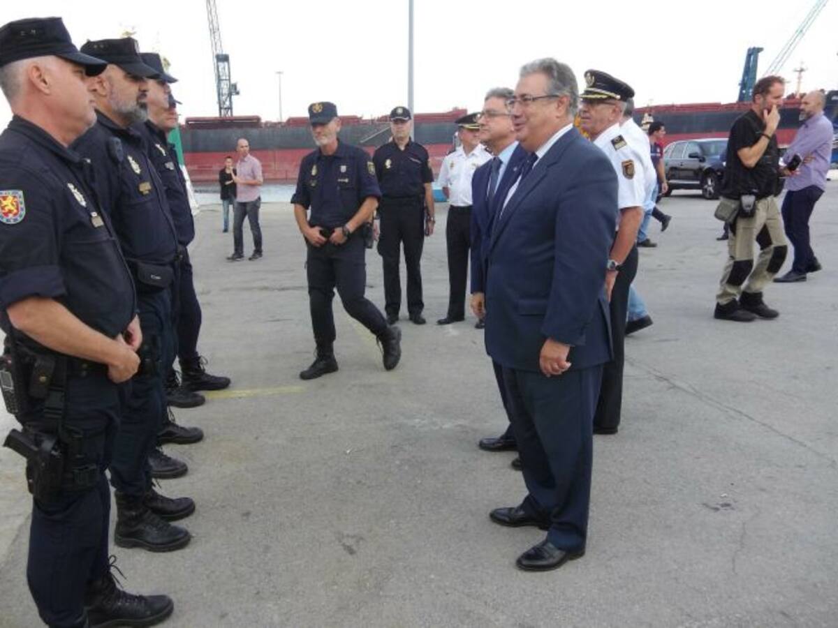 Zoido visita a policías y guardias civiles movilizados en Cataluña
