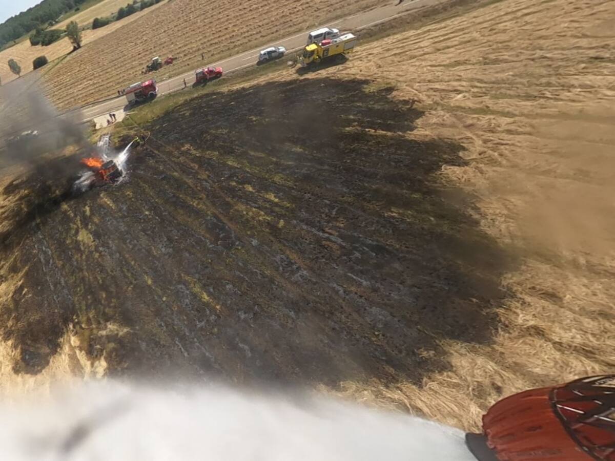 Arde un camión en una tierra de cereal y las llamas amenazan a una "masa arbolada" en Guardo