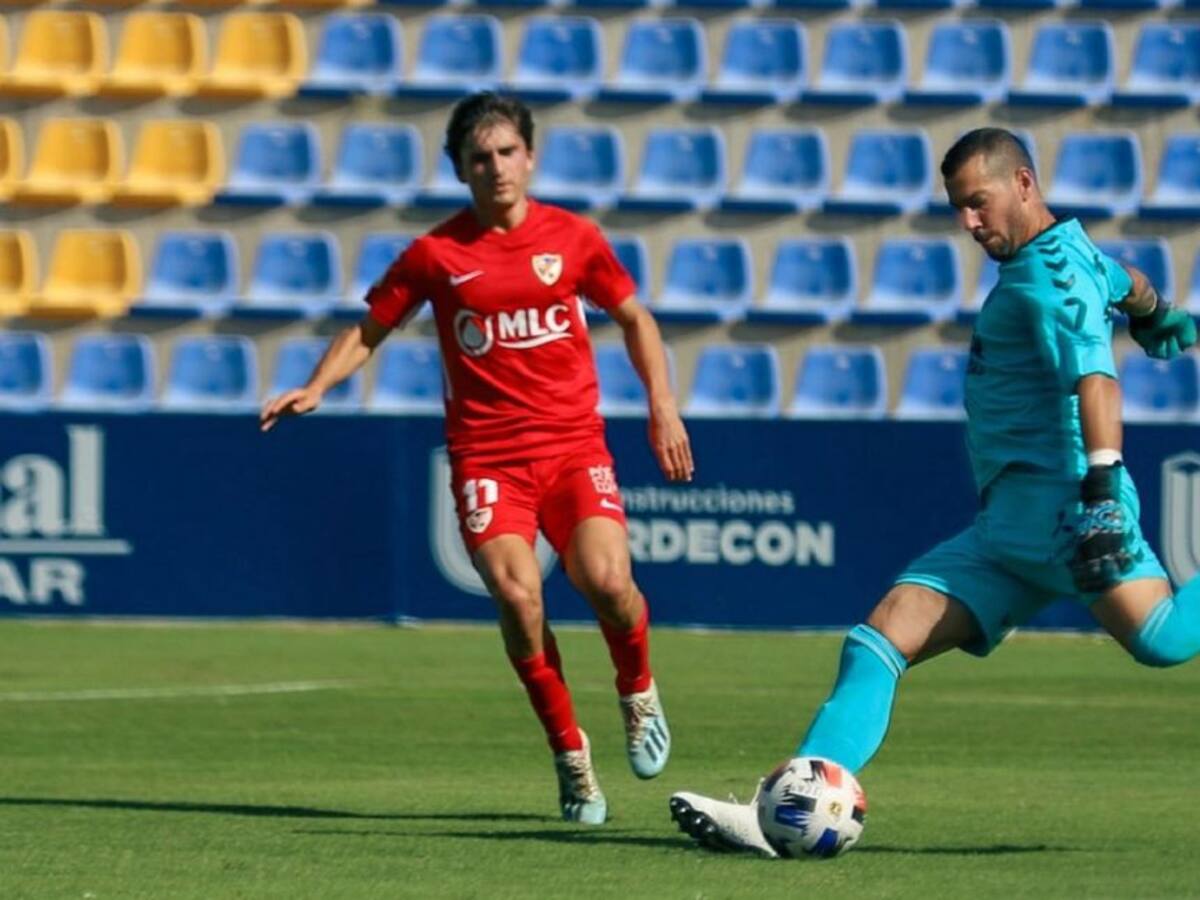 Dos goles del delantero de Águilas dan los tres puntos a un Murcia que vuelve a respirar