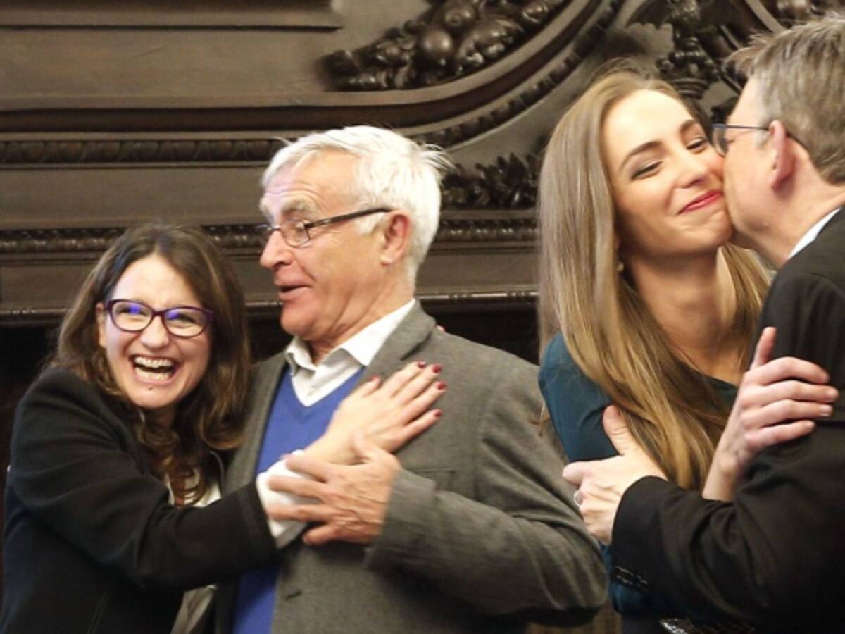 Ximo Puig, Mónica Oltra, Joan Ribó y Raquel Alario han seguido los momentos previos de la elección en el despacho de la Chimenea del Ayuntamiento de Valencia