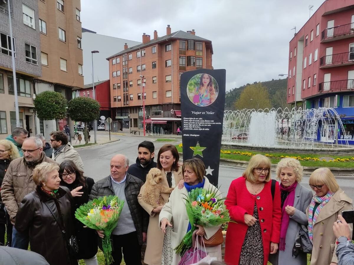 Una pieza escultórica con el lema 'Viajar es volar' recuerda en Flores del Sil a la periodista Mónica Domínguez