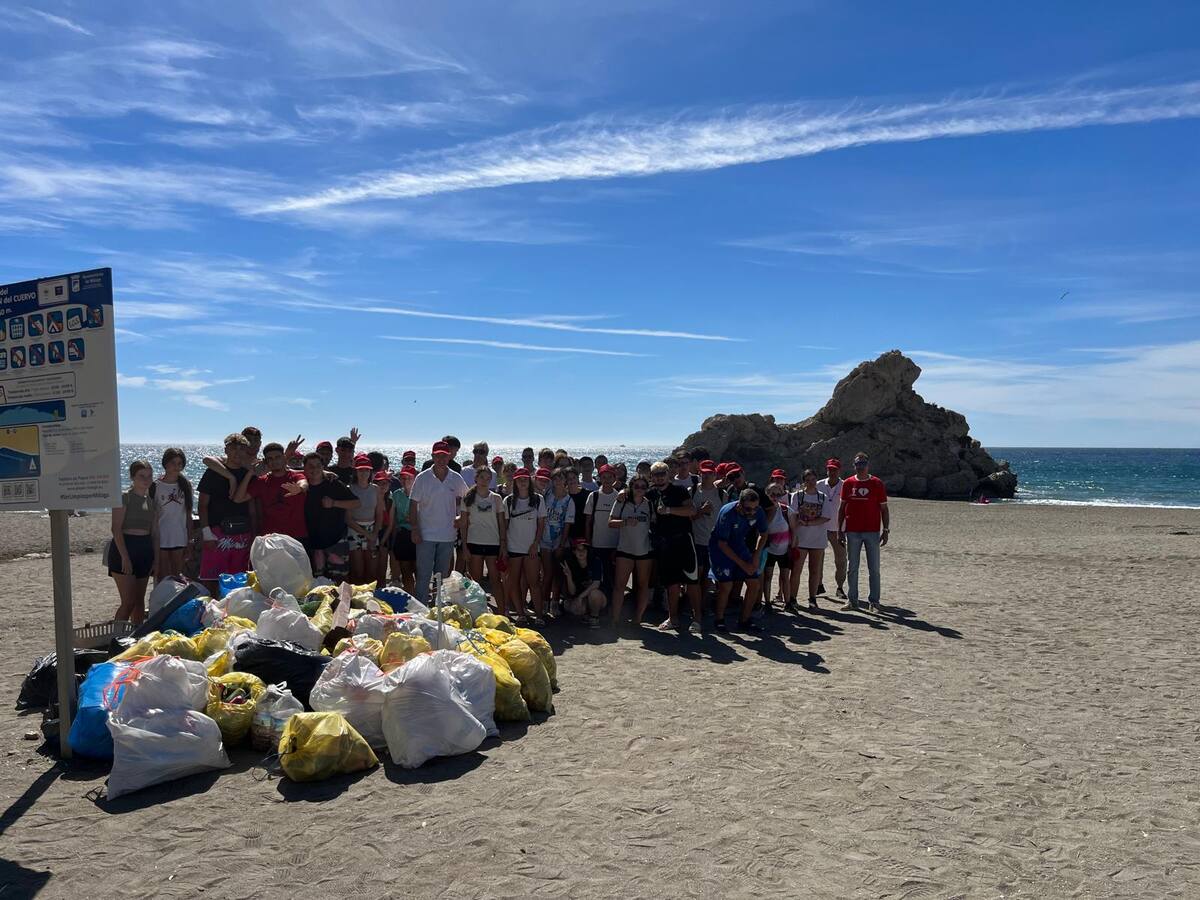 Coca-Cola Europacific Partners (CCEP) celebra la Semana del Voluntariado en la que cerca de 20 voluntarios, han participado en la limpieza de Mares Circulares en la playa del Peñón del Cuervo, junto a Fundación Aula del Mar Mediterráneo, la Fundación Málaga Club de Fútbol con su equipo Genuine y el IES Salvador Rueda.