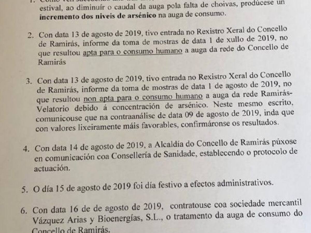 Sin agua corriente en Ramirás por la presencia de arsénico