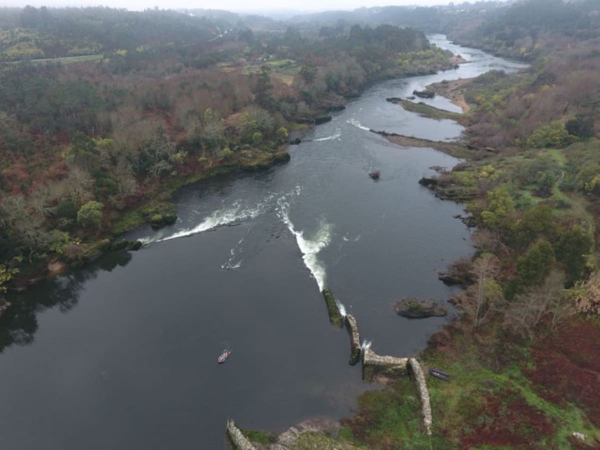 La instalación de la paralela sobre el río Louro permitirá ampliar la senda del Miño